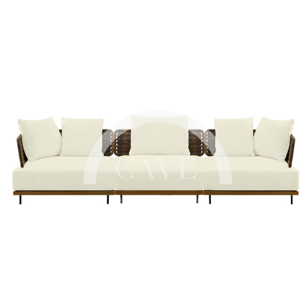 The Rogan Contemporary Outdoor 3 Seater Sofa is a modern design outdoor sofa that is perfect for contemporary rooftops, terraces and balconies. This stylish outdoor sofa is made of PE Synthetic Rattan Back Weave, Teak Wood Base and is available in a variety of colors. Synthetic rattan is durable and is UV resistant and water resistant - a great material for outdoor furniture in Hong Kong. Looks great with the other outdoor seating in the Rogan Outdoor Furniture series. Easy to maintain, lounge in comfort and in style. Comes with seat pad and back cushions in water resistant fabric, also available in a variety of colors.
