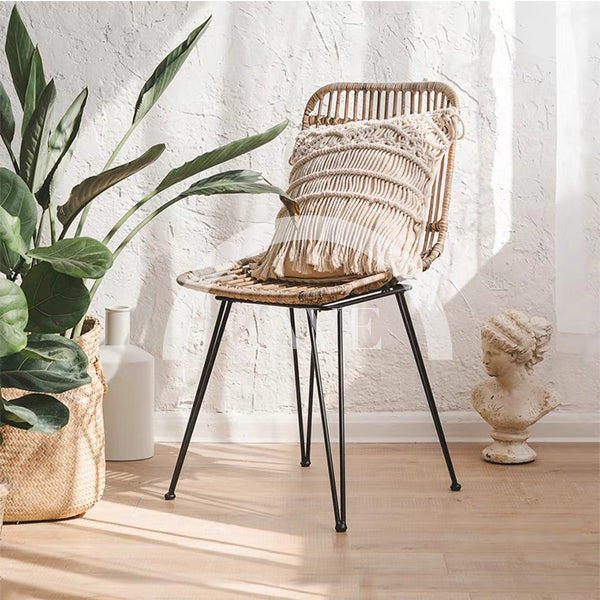 The Decor8 Zulu Rattan Dining Chair is made of natural rattan and woven by hand to create a truly natural and rustic dining chair for modern interiors. This rattan wicker chair is supported by black metal legs, is sturdy and easy to maintain. The Kolo Rattan Dining Chair is a modern and elegant dining chair for modern dining rooms and living spaces. This item ships in 3-4 weeks.